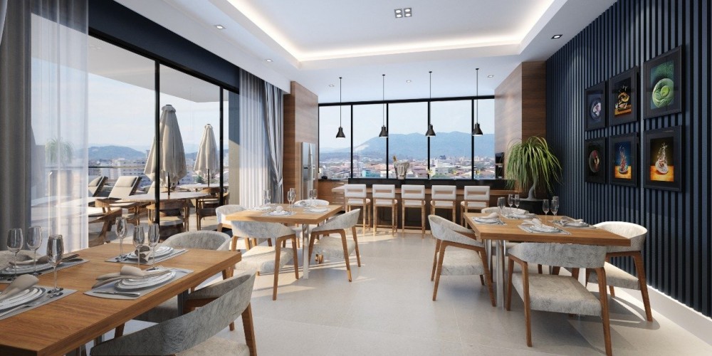Porcelanato 80x80cm em toda a área social e piso retificado full HD, que imita madeira nas suítes;